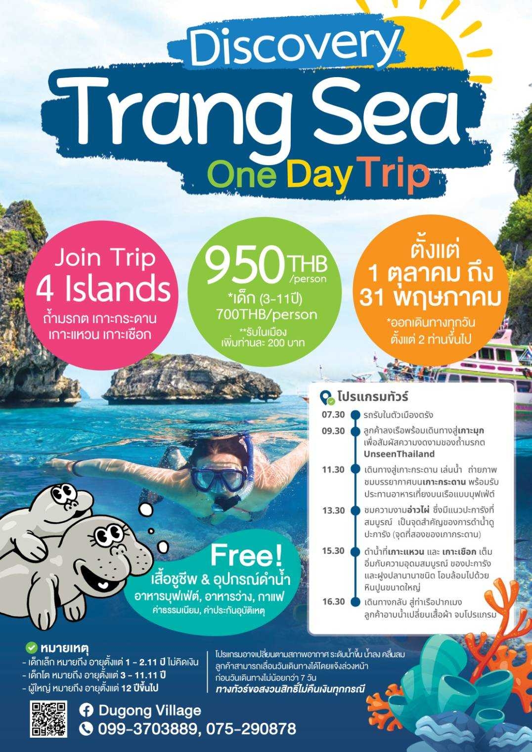 Water Sports: Engage in various water sports such as snorkeling, scuba diving, kayaking, a famous of island trip. Koh Mook, Koh Maah, Koh Chuak, Koh Wean, Koh Kradan, Koh Ngai and emerald cave. These activities allow you to explore the marine life and enjoy the crystal-clear waters.